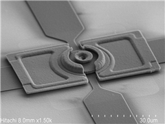 半导体所集成技术工程研究中心相关课题组多年来致力于射频谐振器件以及测试表征系统的研制工作,解决了关键技术难点:(1)新型射频谐振子的构型设计,以及相应的微纳加工工艺探索,(2)高Q值的实现,(3)针对MEMS 谐振器件的测试表征方法和测试系统的开发和研制, 并取得了一系列的科研进展。制作出了基频282MHz、Q值高于104的新型圆盘谐振子原型器件(见图),研制了具有独立自主知识产权的、高频/射频MEMS谐振器件的宽频谱测试表征系统(最高可测试频率6GHz)。这些研究结果已经发表在MEMS领域最权威的期刊IEEE J. Microelectromech. Syst.和两个顶级会议IEEE MEMS和Transducers上。